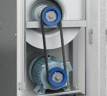 駆動方式にはベルト駆動と直結駆動の二つがあります。直結駆動方式ではベルトの滑りによる伝達ロスがないため、より省エネになります。また、ベルトレスなのでメンテナンス的にも大きなメリットがあります。