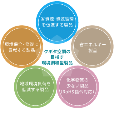 当社では製品の環境配慮活動として以下の5つの分野において製品ごとに達成目標を掲げ、「環境調和型製品」の開発に取り組んでいます。
