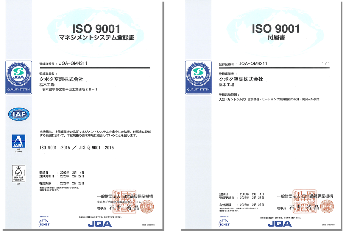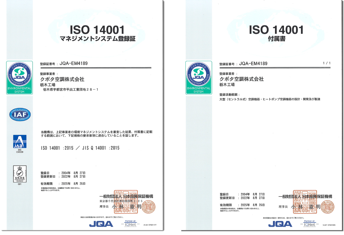 RoHS指令対応を完全にクリアする空調機も提供しています。また、栃木工場では、2004年に「ISO14001」を認証取得し、マネージメントプログラムに基づき、目標を定め「PDCA」のサイクルを回しながら、環境負荷の低減に努めています。