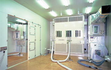 The “Technical Center” that has been built at the Tochigi Plant is a research facility dedicated to air conditioning. The Center pursues the development of a comfortable and safe next-generation air environment and has top-level air conditioning industry equipment such as a calorimeter that can accurately measure the thermal capacity of an AHU, an environmental testing lab that can freely create temperature conditions throughout the year, and other facilities such as an acoustic test room, AMCA fan performance test equipment and gas removal test equipment.