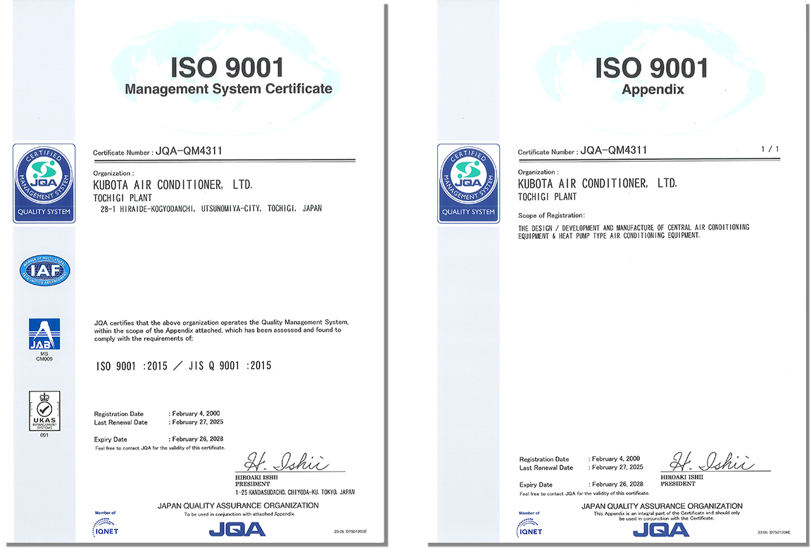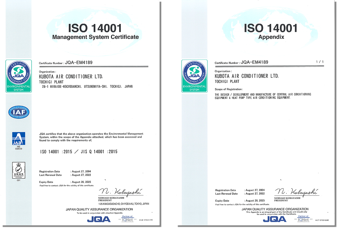 We also supply AHU that completely clear the requirements of the RoHS Directive. In addition, the Tochigi Plant acquired ISO 14001 certification in 2004 and works based on a management program to set targets and follow the PDCA cycle to reduce its environmental load.