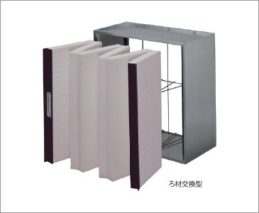 超極細繊維(0.5~2μ)のろ材を折り込み、非常に高い捕集効率を持っています(比色法65~95%)。一般ビルはもちろん、産業用空調でも捕集効率に合わせ幅広く使用されています。