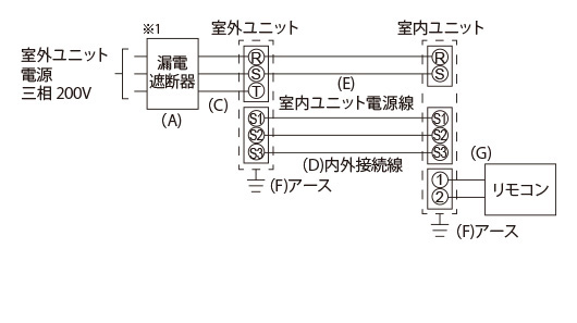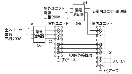 | 室内ユニット電源 | 漏電遮断器 (※内外別受電方式時) |