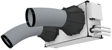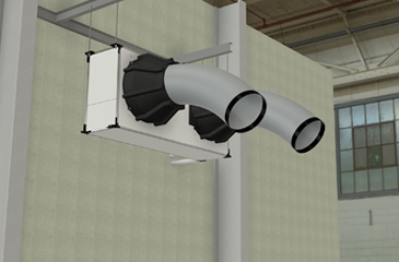 スポットクーラーは熱風の排出も本体でおこなうので室内に熱がこもりがちですが、エリア空調機では熱風は施設の外に排出します。