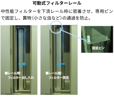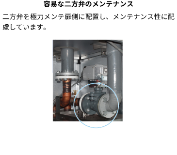 可動式フィルターレールの開発や二方弁の配置改善により、メンテナンス性をさらに向上させました。