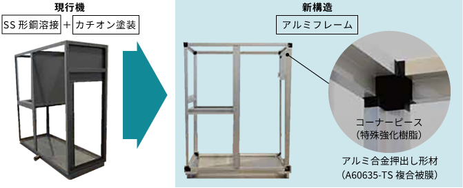 組み立て式のアルミフレーム構造が、軽量化・高防錆を実現。
