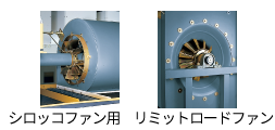 | 特長 | シロッコファンと呼ばれ、広く一般に使用されている。回転数も低く、騒音も小さい。 | 風量・静圧のカバー範囲が広くモーター直結が標準なのでメンテナンスが容易。 (ベルト・軸受不要) | 一般的にエアフォイルファンと呼ばれ、最も効率が良く高静圧な範囲も対応可能。 |